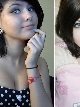 Молоденькая брюнеточка с отличными внешними данными и милым личиком любит пошло позировать и светить своими сисечками, и готова это делать не только в квартире, но и за ее пределами. Красивая фея частенько выходит в подъезд в черном нижнем белье и показывает себя сидя на подоконнике, а так же может лишь в бежевых чулках развратничать на ступеньках.