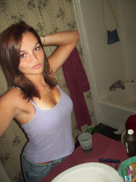 Сидя в спальне, молодой Леночке захотело обнажить свои прелести и она сняла с себя темное белье, оставшись полностью голой. Затем краля стала раком, показав свою аппетитную жопу, и пошла в ванную комнату, где покупалась и вымыла все свои дырочки. Вернувшись в комнату, прошмандовка надела одежду и немного посидела на кровати с расставленными ногами.