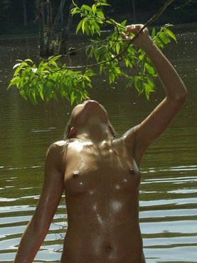 Во время прогулки по тропическому лесу длинноногая красавица нашла озеро и очень сильно захотела в нем искупаться. Оголив стройное тело, сексапильная миледи зашла в воду и начала мыться, обливая водой аппетитные сиськи и булочки. Голенькая Жасмин получает кайф когда вода попадает на ухоженные эрогенные зоны.
