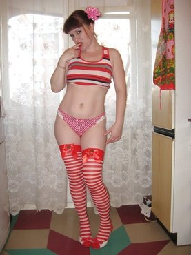Барышня в возрасте настолько любит свое тело, что не считает правильным прятать его от остальных и поэтому частенько гуляет по улице или природе абсолютно голой, позволяя себе только иногда надевать чулки. Голая дама без стыда светит татуировкой на письке и самой промежностью, расставляя в стороны аппетитные ножки.
