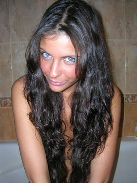 Темноволосая баловница не стесняется казаться развратной и пошлой, поэтому с удовольствием позирует, когда дома кто-то есть. Сексапильная брюнеточка с красивой мордашкой готова поворачиваться не только задом, демонстрируя отличный зад, но и передом, красуясь ухоженным лобком и аппетитными молочными железами хорошего размера.