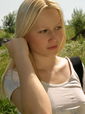 Выехав далеко за город страстная деваха оказалась среди пшеничного поля. Свежий воздух быстро вскружил голову милахи и она через пару минут была уже совершенно голая. Очаровательная кокетка не стесняется светить своими потрясающими дойками под открытым небом и даже не прикрывает их, а еще и свою сладкую писечку.