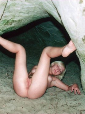 Сексапильная девушка с интимной стрижкой на лобке любит путешествовать и вот сегодня она попала в большую пещеру, в которой прошла достаточно далеко от входа, а затем все с себя сняла и начала хвастаться прелестями. Голая красотка с радостью показывает упругие сиськи, а затем присаживается на большой камень и расставив ноги открывает твид на промежность.