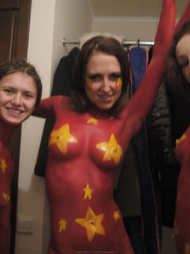 Компания дамочек устроила небольшую вечеринку и уселась за столики, после чего перед ними появился голый стриптизер в маске и начала радовать телочек видом полностью голого мускулистого тела. Подойдя к одной из цыпочек, крендель задрал ее сарафан, а затем начала страстно лапать ее за жопу, от чего грешница чуть не кончила.