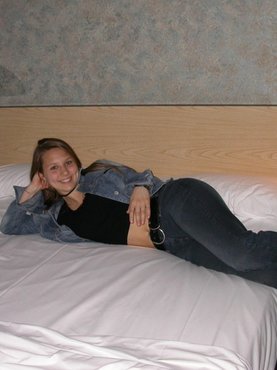 Привлекательная грешница с милой мордашкой закрылась у себя дома и сняла с себя лосины и трусики. Оставшись только в черной кофточке, молодая деваха начала сексуально позировать на удобной кровати, без стыда раздвигая ноги и показывая несильно волосатую киску. Через время нежная особа сняла и кофту, чтобы помимо манды показать еще и свои груди.