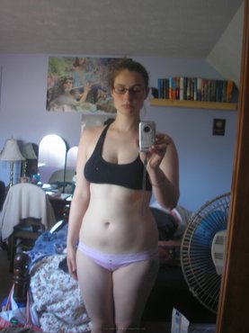Нескромная девушка, носящая очки, накрасила губы красной помадой и отправилась в ванную комнату, но не чтобы покупаться, а чтобы позировать перед камерой в голом виде. Пошлячка с пигментными пятнами на теле не прячет от объектива большие буфера, а так же не стесняется делать так, чтобы вместе с дойками в кадре была еще и зона бикини.