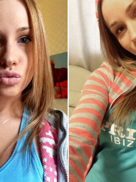 Длинноногая шатенка в красном пеньюаре и трусиках спустилась с двухъярусной кровати и разбудила спящую блондинку и предложила раздеться догола. Улыбчивая нимфа сразу же согласилась на предложение темноволосой пошлячки и оголила большие титьки, а затем и все остальное. Оставшись голенькими, обе чики легли на койку и принялись чуть журнала, мило улыбаясь при этом.