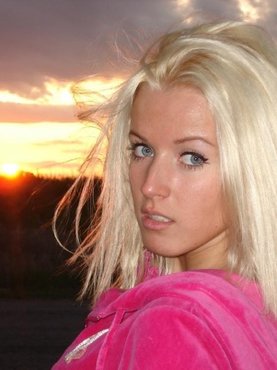 Голая блондиночка стоит на улице прикрывая письку и соски