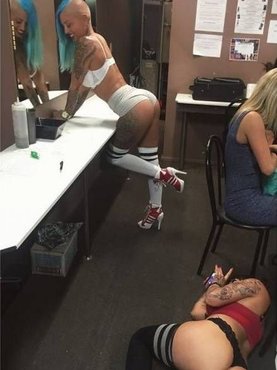 Молодые барышни демонстрируют голые буфера перед зеркалом