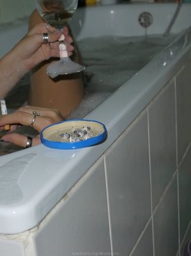 Выпившая молодуха покупалась в ванне не снимая трусики