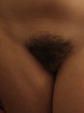 Темнокожая цыпочка показывает вагину со щетиной крупным планом