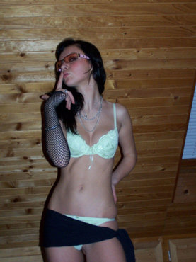 Длинноногая брюнетка в чулках оголилась у друзей на даче