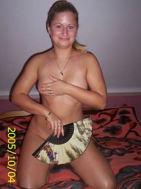 Взрослая скромница прикрывает манду веером сидя на кровати