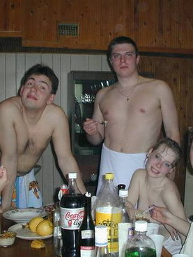 Пьяные телки на вечеринке оголяют сиськи ложась на стол